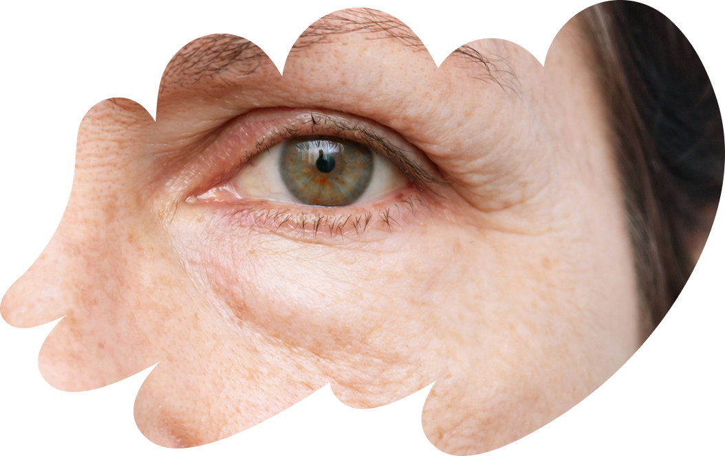 Ausgeprägte Tränensäcke durch Vorwölbung von Fettgewebe